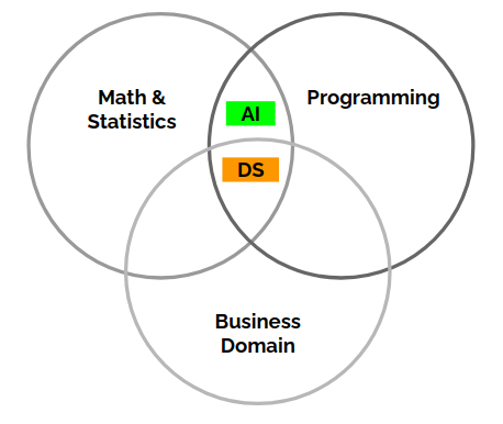 While you don't need a specific degree to start your machine learning career, familiarity with STEM subjects would help a lot. In fact, it is possible today to be exposed to AI with almost no mathematical background, but technical skills such as mathematics/statistics and programming are essentials to make you shine in the field. In AI you will need more algorithms and programming skills, on the other side in DS business acumen will make the difference. Python is key programming language for both bases. It has a lot of built-in libraries that implement machine learning algorithms with single line code. In Data Science, structured query language (SQL) is needed in addition.